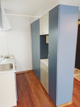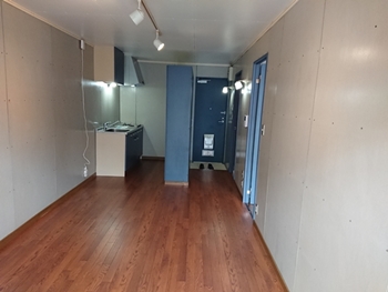 一見、倉庫?と思わせるような魅力的なこの物件、室内の壁もクロスじゃなくボードなんです。キッチンの対面には、お洒落な食器棚つき。 ※保証料初回¥20000円以降月額¥1000円・送金料¥330円 ※借家人賠償保険等のご加入が必要です。